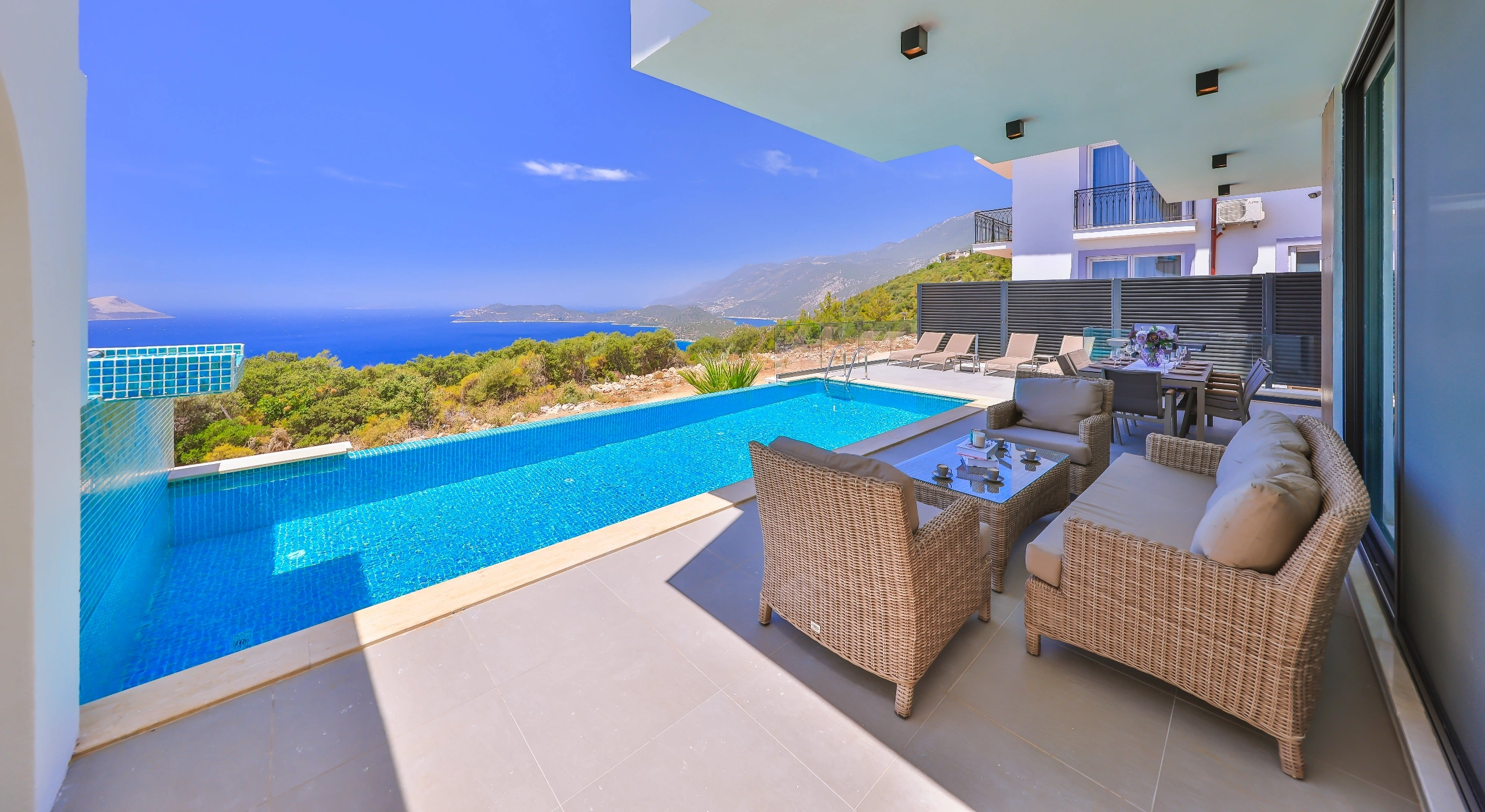 Villa SkyLine; Kaş Orman İşletme Müdürlüğü üzerinde konumlanan, 4 yatak odalı 8 kişilik Özel yüzme havuzlu kiralık villamızdır. Modern dizayna sahip olan villamız bulunduğu konum itibari ile muhteşem Deniz Manzarasına sahiptir. Villamız 4 yatak odası ile geniş ailelerin tercih ettiği villalarımızdan’dır. 2023 yapımı oldukça lüx olarak tasarlanmış villamız Kaş Orman İşletme Müdürlüğünün üst kısmında, eşsiz doğası ve manzarası eşliğinde muhteşem bir tatil sizleri bekliyor olacak.